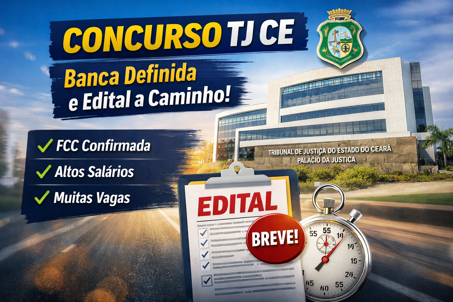Concurso TJ CE com banca definida e edital próximo. Veja cargos, salários e como se preparar para sair na frente.